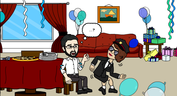 Lui introverso da morire, lei totalmente ignara dell'esistenza di Maniman Teatro e del meraviglioso mondo di cialtroni che ne consegue, se non si fossero incontrati su Internet probabilmente non si sarebbero conosciuti mai. Ma ci piace pensare che, forse, lei sarebbe potuta capitare in uno di quegli spettacoli in cui lui faceva il musico improvvisatore, lo avrebbe notato, e a fine spettacolo si sarebbe approcciata. E la conversazione sarebbe andata più o meno così...